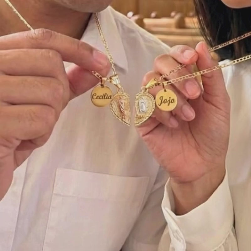Whether given as a romantic Valentine’s surprise or as a meaningful keepsake, this His & Hers necklace set is a beautiful expression of love blessed by devotion.