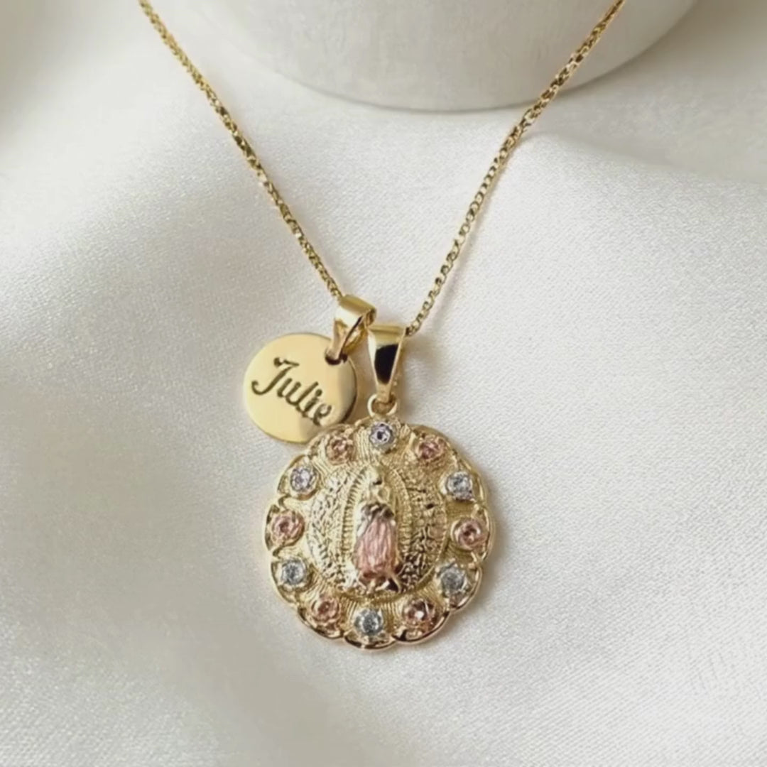 Personalized Floral Virgin Mary Necklace